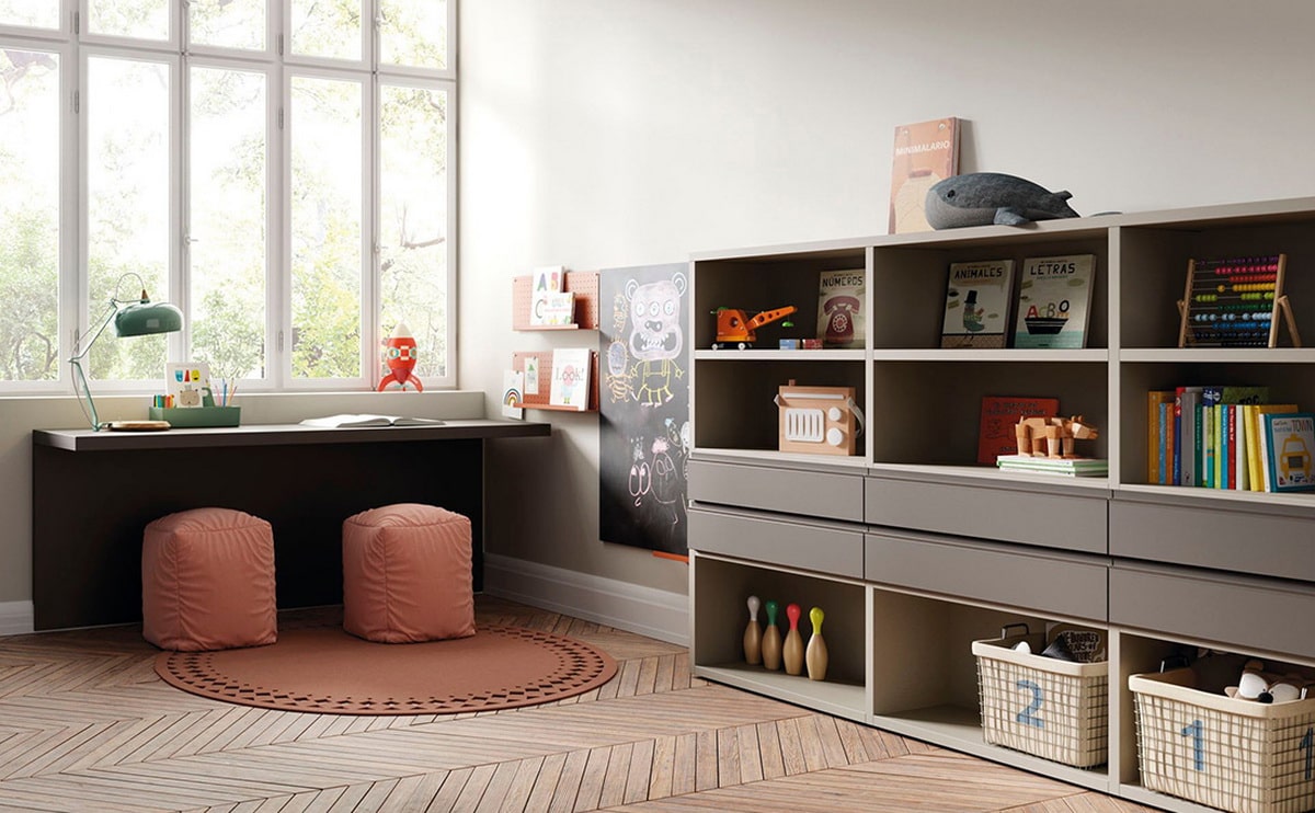 Los muebles con varios compartimentos ayudan a clasificar los objetos por categorías: juguetes, libros, ropa o material escolar.